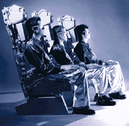 After an intermission, Love & Rockets took the stage, and in this uncertain world I'm always hppy to report that not only does L&R honor their original haircuts, they have retained enough hair to support them. They began their set with a few long, languorous selections from their latest album, Lift. Aurally this was a pleasure, but it failed to generate much excitement in the audience. Everybody was terribly civil, no stage diving or moshing, but on the other hand there was no impetus to surge toward the stage and make a lot of noise either. I didn't even try to breach the protective ring of boyfriends that always tries to keep me two rows away from the stage, it just seemed...impolite. Besides, I was shod in fairly tall pumps (the concert was supporting Lift, ha ha), so I had no problem seeing the band. At any rate, when L&R got around to playing their more lively songs they were too late to create a frenzy. They seemed a perturbed by this, and maybe that would account for the paucity of encores. But this is just a cavil in the face of a swell presentation of terrific music, at the conclusion of which I didn't feel as if I had been mugged. |